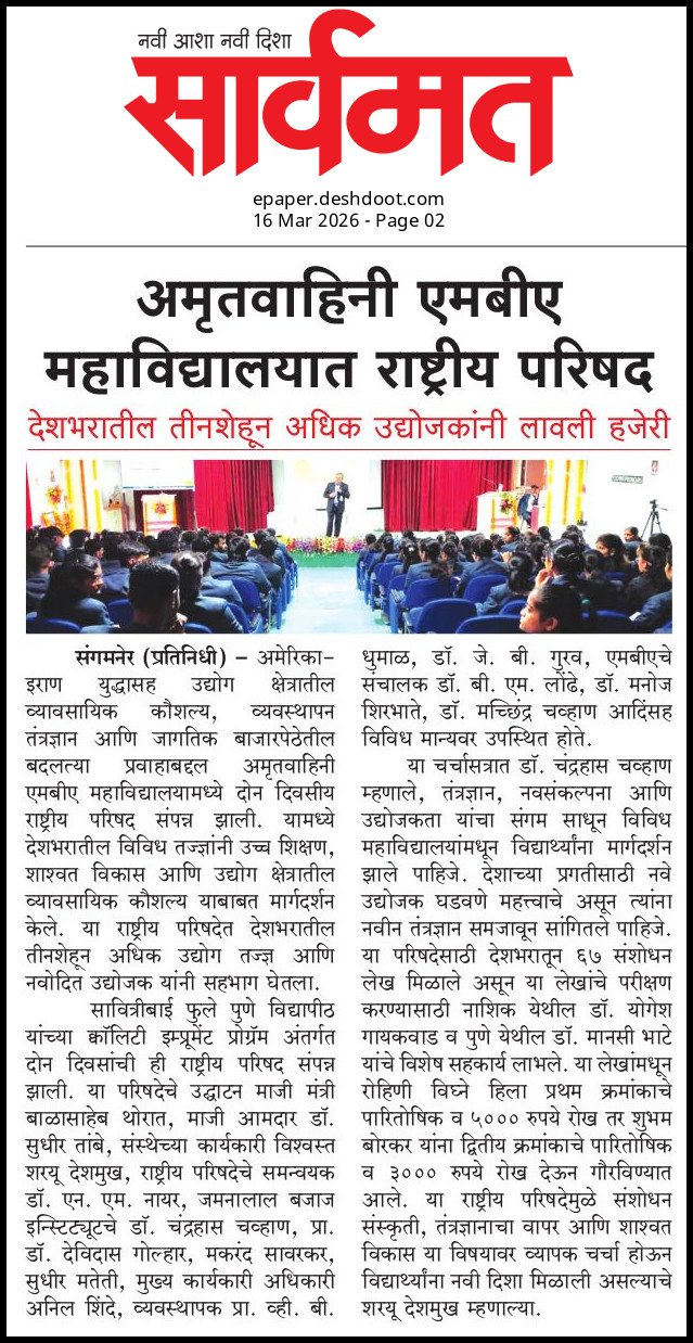 AMRUTVAHINI INSTITUTE OF MANAGEMENT AND BUSINESS ADMINISTRATION, SANGAMNER